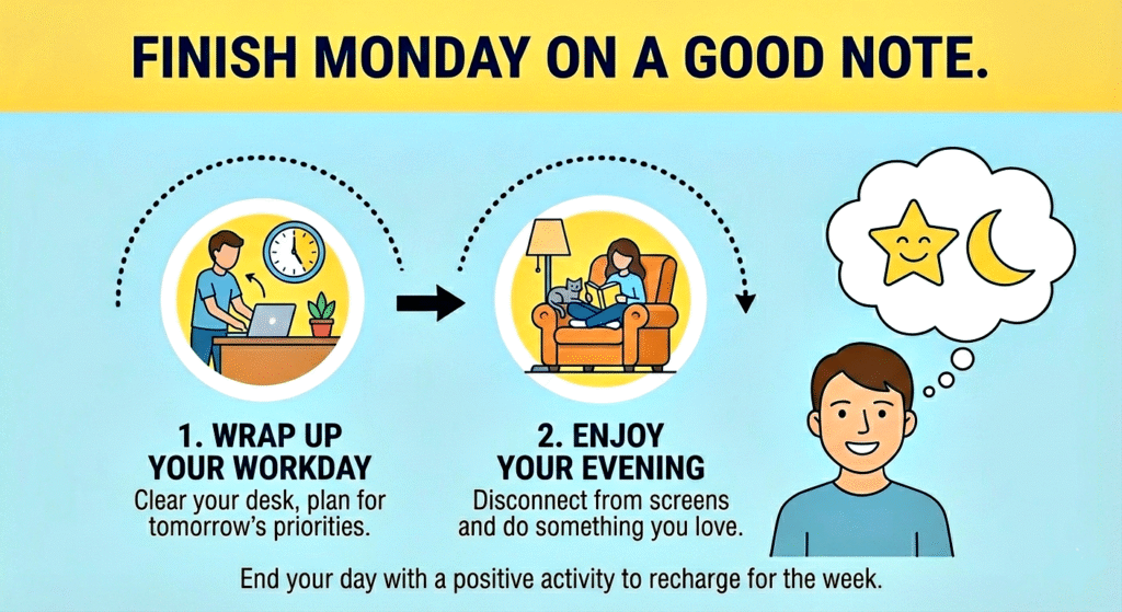 A good ending stops negativity from building up. Good sleep and reflection make future Mondays easier.