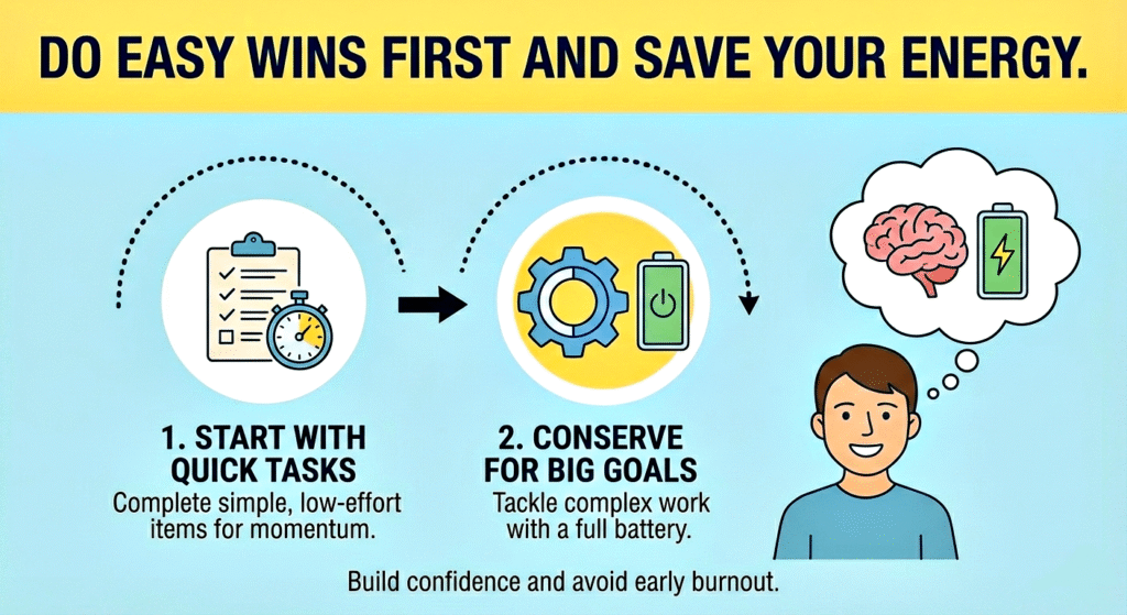 4. Do Easy Wins First and Save Your Energy (Don’t Burn Out Early)