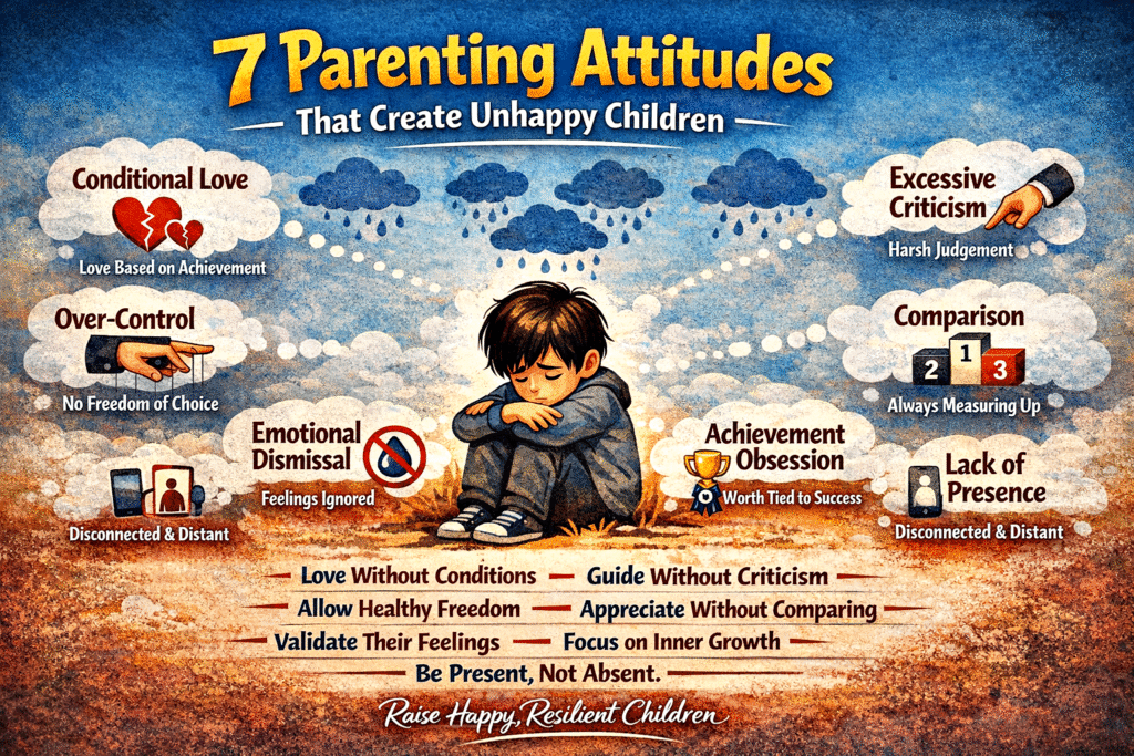 Here are seven parenting attitudes that often create unhappy children, explained in a clear, practical, and deeply insightful way. These are not about blaming parents — but about understanding subtle patterns that silently shape a child’s emotional world.