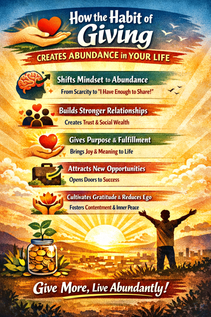 Let’s explore this deeply through five powerful points, each explaining how the habit of giving creates abundance in one’s life.