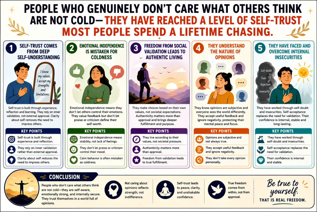 “People who genuinely don’t care what others think are not cold — they have reached a level of self-trust most people spend a lifetime chasing.”